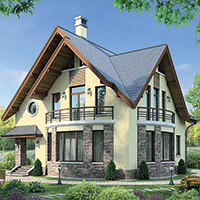 Краткая характеристика проекта: дом с мансардой 12x11 (12 на 11 м), общей площадью 161 кв.м, из газобетона (пеноблоков), с котельной, с кухней-столовой.