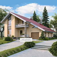 Краткая характеристика проекта: дом с мансардой 13x11 (13 на 11 м), общей площадью 187 кв.м, из кирпича, с гаражом, с террасой, с котельной, с кухней-столовой.