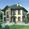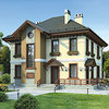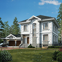 Краткая характеристика проекта: двухэтажный дом с цоколем 17x12 (17 на 12 м), общей площадью 340 кв.м, из кирпича, с гаражом, с террасой, с котельной, с кухней-столовой.