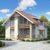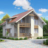 Краткая характеристика проекта: дом с мансардой 9x11 (9 на 11 м), общей площадью 147 кв.м, из газобетона (пеноблоков), с террасой, с котельной, с кухней-столовой.