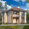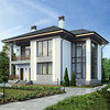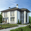 Краткая характеристика проекта: двухэтажный дом 13x13 (13 на 13 м), общей площадью 191 кв.м, из газобетона (пеноблоков), со вторым светом, с террасой, с котельной, с кухней-столовой.