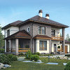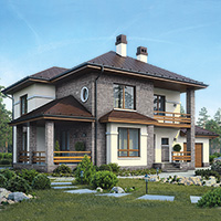 Краткая характеристика проекта: двухэтажный дом 19x12 (19 на 12 м), общей площадью 183 кв.м, из кирпича, с гаражом, со вторым светом, с террасой, с котельной, с кухней-столовой.