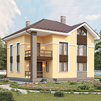 + терраса, балкон - 15,6 кв.м. Есть зеркальная версия проекта. Проект двухэтажного жилого дома рекомендован для семьи из 4-5 человек. Жилая постройка сочетает целый набор положительных качеств: гармоничность архитектуры, удобство внутренней планировки, капитальность и надежность конструктивных решений. Среди других достоинств – просторная гостиная, объединенная с кухонной зоной, наличие веранды, которая при желании послужит замечательной столовой, возможность уединения и полноценного отдыха. Обращаем особое внимание, что загородный дом пригоден не только для сезонного, но и для круглогодичного проживания.