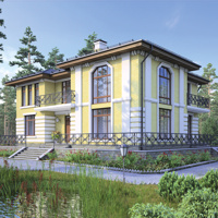 Краткая характеристика проекта: двухэтажный дом 20x16 (20 на 16 м), общей площадью 230 кв.м, из газобетона (пеноблоков), со вторым светом, с террасой, с котельной, с кухней-столовой.
