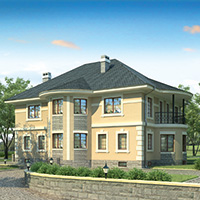 Краткая характеристика проекта: двухэтажный дом с цоколем 15x11 (15 на 11 м), общей площадью 455 кв.м, из газобетона (пеноблоков), с котельной, с кухней-столовой.