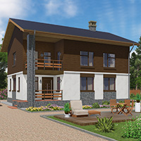 Краткая характеристика проекта: двухэтажный дом 12x9 (12 на 9 м), общей площадью 172 кв.м, комбинированного, с террасой, с котельной, с кухней-столовой.