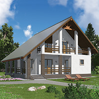 Краткая характеристика проекта: дом с мансардой 11x10 (11 на 10 м), общей площадью 127 кв.м, из газобетона (пеноблоков), с террасой, с котельной, с кухней-столовой.
