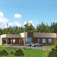 Краткая характеристика проекта: одноэтажный дом 21x16 (21 на 16 м), общей площадью 200 кв.м, из кирпича, с террасой, с котельной, с кухней-столовой.