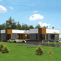 Краткая характеристика проекта: одноэтажный дом 28x20 (28 на 20 м), общей площадью 250 кв.м, из кирпича, с террасой, с котельной, с кухней-столовой.