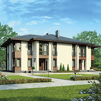 Краткая характеристика проекта: двухэтажный дом 21x14 (21 на 14 м), общей площадью 414 кв.м, из газобетона (пеноблоков), с террасой, с котельной, с кухней-столовой.