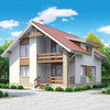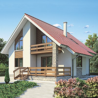 Краткая характеристика проекта: дом с мансардой 10x11 (10 на 11 м), общей площадью 148 кв.м, из газобетона (пеноблоков), с террасой, с котельной, с кухней-столовой.