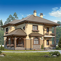Краткая характеристика проекта: двухэтажный дом 13x11 (13 на 11 м), общей площадью 207 кв.м, каркасного, с террасой, с котельной, с кухней-столовой.