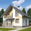 Краткая характеристика проекта: дом с мансардой 9x11 (9 на 11 м), общей площадью 112 кв.м, из газобетона (пеноблоков), с котельной, с лоджией, с кухней-столовой.