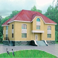 Краткая характеристика проекта: двухэтажный дом с цоколем 13x11 (13 на 11 м), общей площадью 312 кв.м, из кирпича, с котельной, с кухней-столовой.