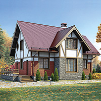 Краткая характеристика проекта: дом с мансардой 8x13 (8 на 13 м), общей площадью 136 кв.м, каркасного, с террасой, с котельной, с кухней-столовой.