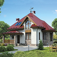 Краткая характеристика проекта: дом с мансардой 10x9 (10 на 9 м), общей площадью 96 кв.м, из кирпича, с террасой, с котельной, с кухней-столовой.