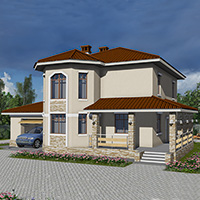 Краткая характеристика проекта: двухэтажный дом 16x11 (16 на 11 м), общей площадью 175 кв.м, из кирпича, с гаражом, с террасой, с котельной, с кухней-столовой.