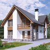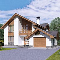 Краткая характеристика проекта: дом с мансардой 13x14 (13 на 14 м), общей площадью 172 кв.м, из кирпича, с гаражом, с террасой, с котельной, с лоджией, с кухней-столовой.