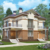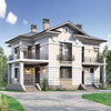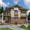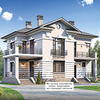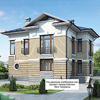 Краткая характеристика проекта: двухэтажный дом 13x13 (13 на 13 м), общей площадью 202 кв.м, из газобетона (пеноблоков), с террасой, с котельной, с кухней-столовой.