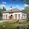 Краткая характеристика проекта: одноэтажный дом 12x12 (12 на 12 м), общей площадью 115 кв.м, из кирпича, с котельной, с кухней-столовой.