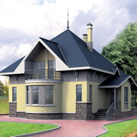 Краткая характеристика проекта: дом с мансардой 9x9 (9 на 9 м), общей площадью 162 кв.м, из газобетона (пеноблоков), с кухней-столовой.