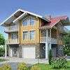 Краткая характеристика проекта: дом с мансардой 11x11 (11 на 11 м), общей площадью 183 кв.м, из дерева, с котельной.