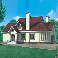 Краткая характеристика проекта: дом с мансардой 18x11 (18 на 11 м), общей площадью 270 кв.м, из кирпича, со вторым светом, с зимним садом, с котельной, с кухней-столовой.