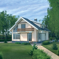 Краткая характеристика проекта: дом с мансардой 9x10 (9 на 10 м), общей площадью 152 кв.м, из газобетона (пеноблоков), со вторым светом, с террасой, с котельной, с кухней-столовой.