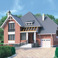 Краткая характеристика проекта: дом с мансардой 16x10 (16 на 10 м), общей площадью 242 кв.м, из кирпича, с гаражом.