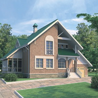 Краткая характеристика проекта: дом с мансардой 12x10 (12 на 10 м), общей площадью 209 кв.м, из кирпича, с гаражом.