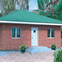 Краткая характеристика проекта: одноэтажный дом 8x7 (8 на 7 м), общей площадью 44 кв.м, из кирпича, с котельной.