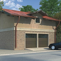 Краткая характеристика проекта: двухэтажный дом с цоколем 7x7 (7 на 7 м), общей площадью 147 кв.м, из кирпича, с гаражом, с котельной, с кухней-столовой.