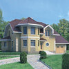 Краткая характеристика проекта: дом с мансардой 16x11 (16 на 11 м), общей площадью 212 кв.м, из газобетона (пеноблоков), с гаражом, с котельной, с кухней-столовой.
