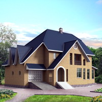 Краткая характеристика проекта: двухэтажный дом с цоколем 19x13 (19 на 13 м), общей площадью 370 кв.м, из кирпича, с гаражом, с кухней-столовой.