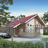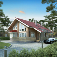 Краткая характеристика проекта: дом с мансардой 13x11 (13 на 11 м), общей площадью 184 кв.м, из дерева, со вторым светом, с террасой, с котельной, с кухней-столовой.