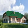 Краткая характеристика проекта: дом с мансардой 13x11 (13 на 11 м), общей площадью 220 кв.м, из газобетона (пеноблоков), с гаражом, с котельной, с кухней-столовой.