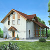 Краткая характеристика проекта: дом с мансардой 8x10 (8 на 10 м), общей площадью 151 кв.м, из газобетона (пеноблоков), с террасой, с котельной.