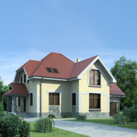 Краткая характеристика проекта: двухэтажный дом 13x10 (13 на 10 м), общей площадью 192 кв.м, из газобетона (пеноблоков), с гаражом, с котельной, с кухней-столовой.