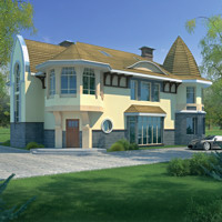 Краткая характеристика проекта: двухэтажный дом с мансардой 15x15 (15 на 15 м), общей площадью 360 кв.м, из кирпича, с котельной.