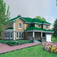 Краткая характеристика проекта: двухэтажный дом с цоколем 15x12 (15 на 12 м), общей площадью 367 кв.м, из кирпича, с гаражом, со вторым светом, с террасой, с котельной.