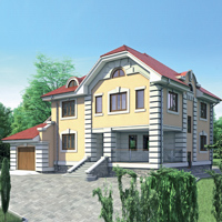Краткая характеристика проекта: двухэтажный дом с цоколем 15x12 (15 на 12 м), общей площадью 303 кв.м, из газобетона (пеноблоков), с гаражом, с террасой, с котельной.