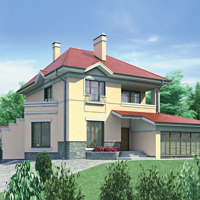 Краткая характеристика проекта: двухэтажный дом с цоколем 15x14 (15 на 14 м), общей площадью 232 кв.м, из газобетона (пеноблоков), с гаражом, со вторым светом, с зимним садом.