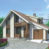 Краткая характеристика проекта: дом с мансардой 13x11 (13 на 11 м), общей площадью 183 кв.м, из газобетона (пеноблоков), с гаражом, с террасой, с котельной, с кухней-столовой.